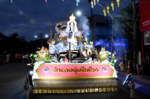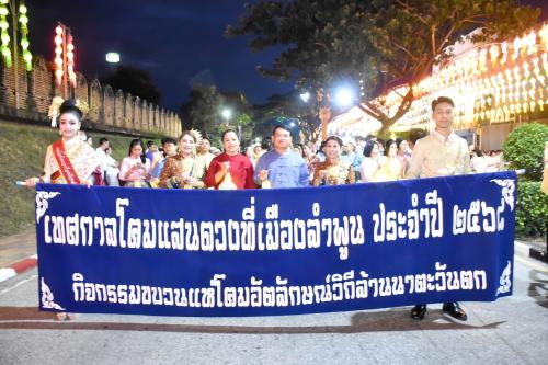 โดยในเวลา 18.30 น. ร่วมขบวนแห่โคม งานเทศกาลโคมแสนดวงที่เมืองลำพูน ประจำปี 2568 ซึ่งมีขบวนทั้งสิ้น 12 ขบวน ประกอบไปด้วยขบวนของส่วนราชการในจังหวัดลำพูน และขบวนจาก 8 อำเภอในจังหวัดลำพูน ที่เคลื่อนขบวนอย่างสวยงามบนถนนอินทยงยศ ก่อนเข้าสู่วัดพระธาตุหริภุญชัยวรมหาวิหารจังหวัดลำพูน