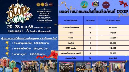 กระทรวงมหาดไทย โดยกรมการพัฒนาชุมชน กำหนดจัดงาน “OTOP CITY 2025” ระหว่างวันที่ 20 - 28 ธันวาคม 2568 ณ อาคารชาเลนเจอร์ 1 - 3 ศูนย์แสดงสินค้าและการประชุมอิมแพ็ค เมืองทองธานี จังหวัดนนทบุรี โดยมุ่งหวังให้เป็นมหกรรมของขวัญ ของฝากสุดยิ่งใหญ่ส่งท้ายปี ที่รวบรวมสินค้า OTOP คุณภาพจากทั่วประเทศมาไว้ในที่เดียว