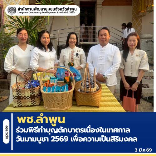 พช.ลำพูน ร่วมพิธีทำบุญตักบาตรเนื่องในเทศกาลวันมาฆบูชา 2569 เพื่อความเป็นสิริมงคล