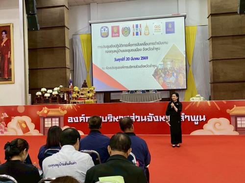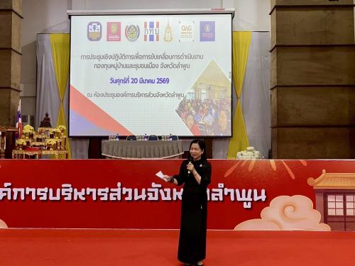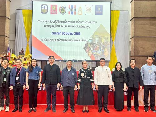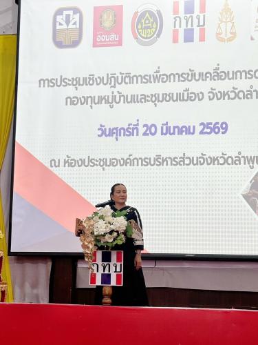 วันนี้ (วันที่ 20 มีนาคม 2569) เวลา 09.00 น. ณ หอประชุมองค์การบริหารส่วนจังหวัดลำพูน นายปิยพงศ์ ชูวงศ์ ผู้ว่าราชการจังหวัดลำพูน ได้มอบหมายให้ นางสาวเบญจวรรณ มีเผือก รองผู้ว่าราชการจังหวัดลำพูน เป็นประธานในพิธีเปิดการประชุมเชิงปฏิบัติการเพื่อขับเคลื่อนการดำเนินงานกองทุนหมู่บ้านและชุมชนเมืองของจังหวัดลำพูน โดยมีกลุ่มเป้าหมาย คือ ประธานและคณะกรรมการกองทุนหมู่บ้านและชุมชนเมืองในพื้นที่จังหวัดลำพูนทั้ง 589 กองทุน รวมจำนวนกว่า 650 คน