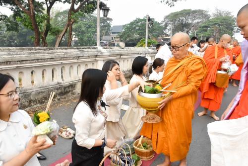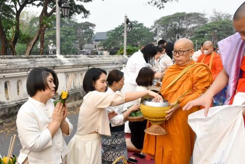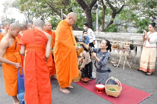พช.ลำพูน ร่วมกิจกรรมตักบาตรพระสงฆ์ 30 รูป ในโครงการ “หิ้วตะกร้า นุ่งผ้าไทย ใส่ใจวิถีธรรม”