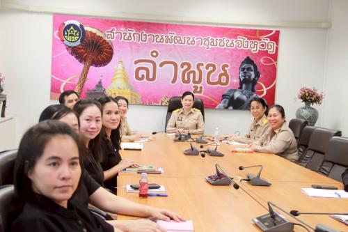 ในการนี้ นางลัดดา พรหมเมือง พัฒนาการจังหวัดลำพูน พร้อมด้วย ผู้อำนวยการกลุ่มงาน และนักวิชาการพัฒนาชุมชน ร่วมประชุมฯ